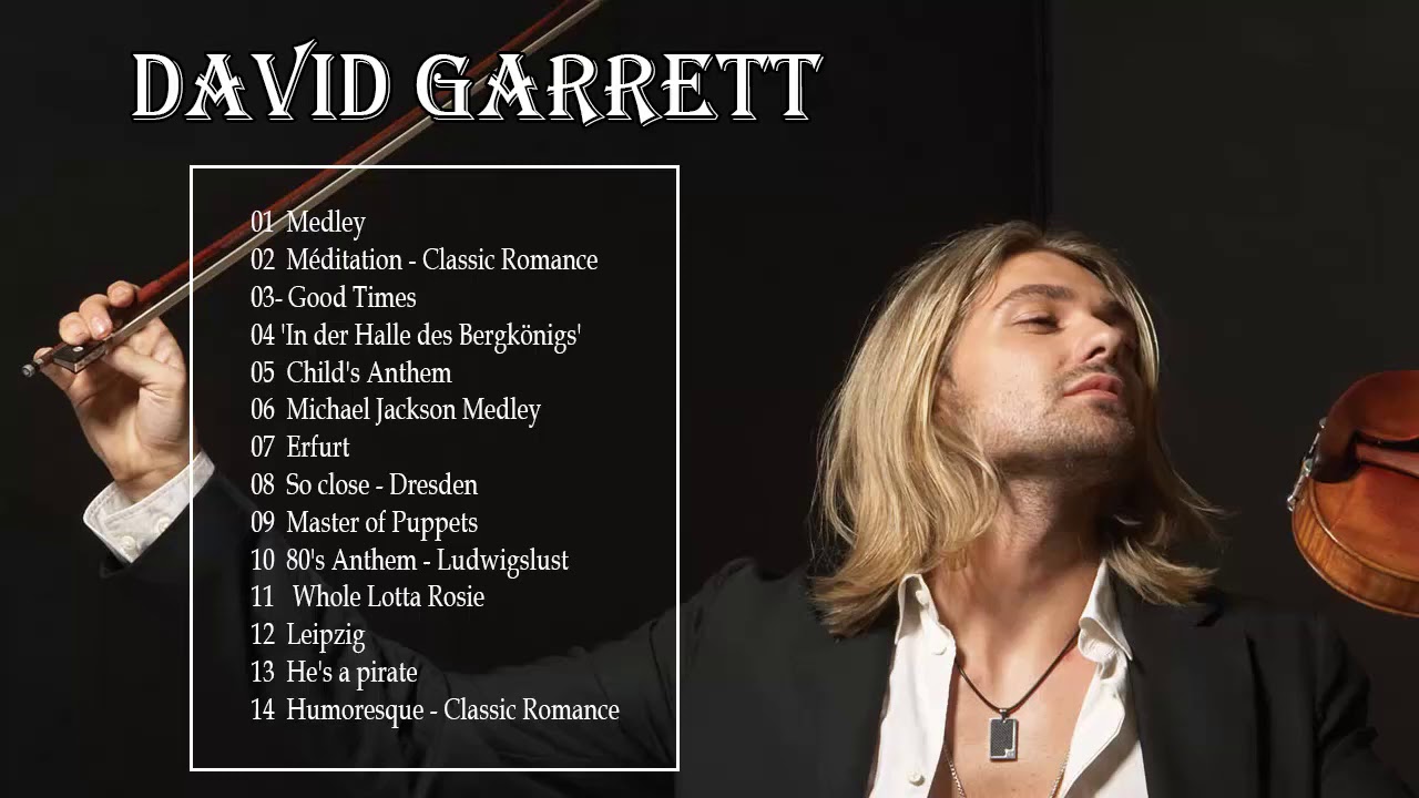 David christian bongartz (born 4 september 1980), better known by his stage name david garrett, is a german classical and crossover violinist and recording artist david garrett. 2 часа 10 минут 7 секунд.